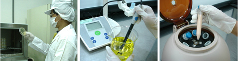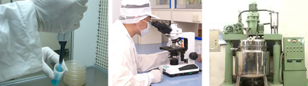 完整的化妝品工廠檢驗設備如黏度計、水分測定儀、色度計、pH酸鹼計、顯微鏡等,針對進口原料與已完成的產品,進行物理與化學性的分析以及總生菌與微生物測試等,品質高等把關。