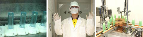 全自動的洗瓶作業系統、150度的高溫殺菌烘箱、微電腦式的定量充填機、精確的噴印日期保存系統等,包裝過程皆依 ISO22716:2007 的化妝品工廠標準作業流程進行。