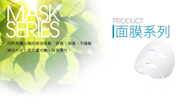 面膜系列-四季美膚必備的美容保養,舒適、保濕、不過敏,補充水份,使肌膚水嫩,保有彈性。