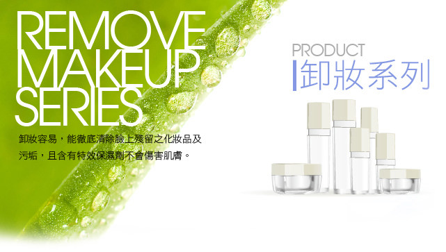 卸妝化妝品系列-卸妝容易,能徹底清除臉上殘留之化妝品及污垢,且含有特效保濕成份不會傷害肌膚。